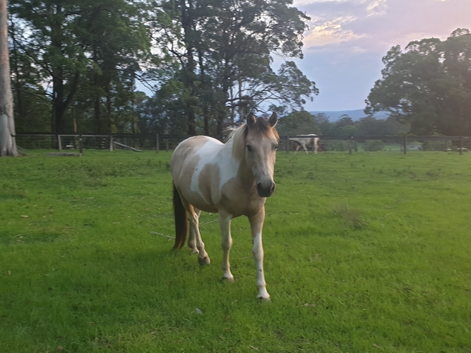 Sollie. Easy to catch, float, friendly. Fully broken in but not ridden lately. Had 2 lovely quiet foals. Used for bush riding, mustering, beach rides, kids leadline. Paddock condition. Intermediate to experience level.